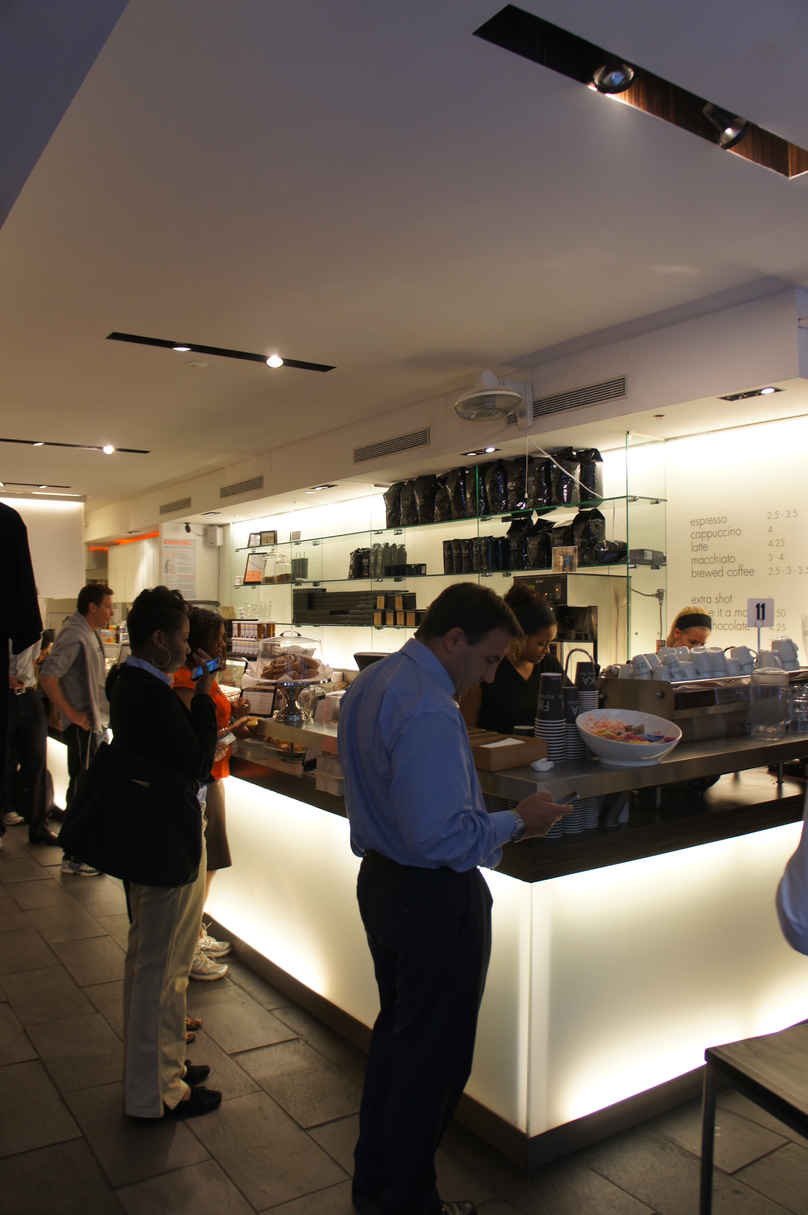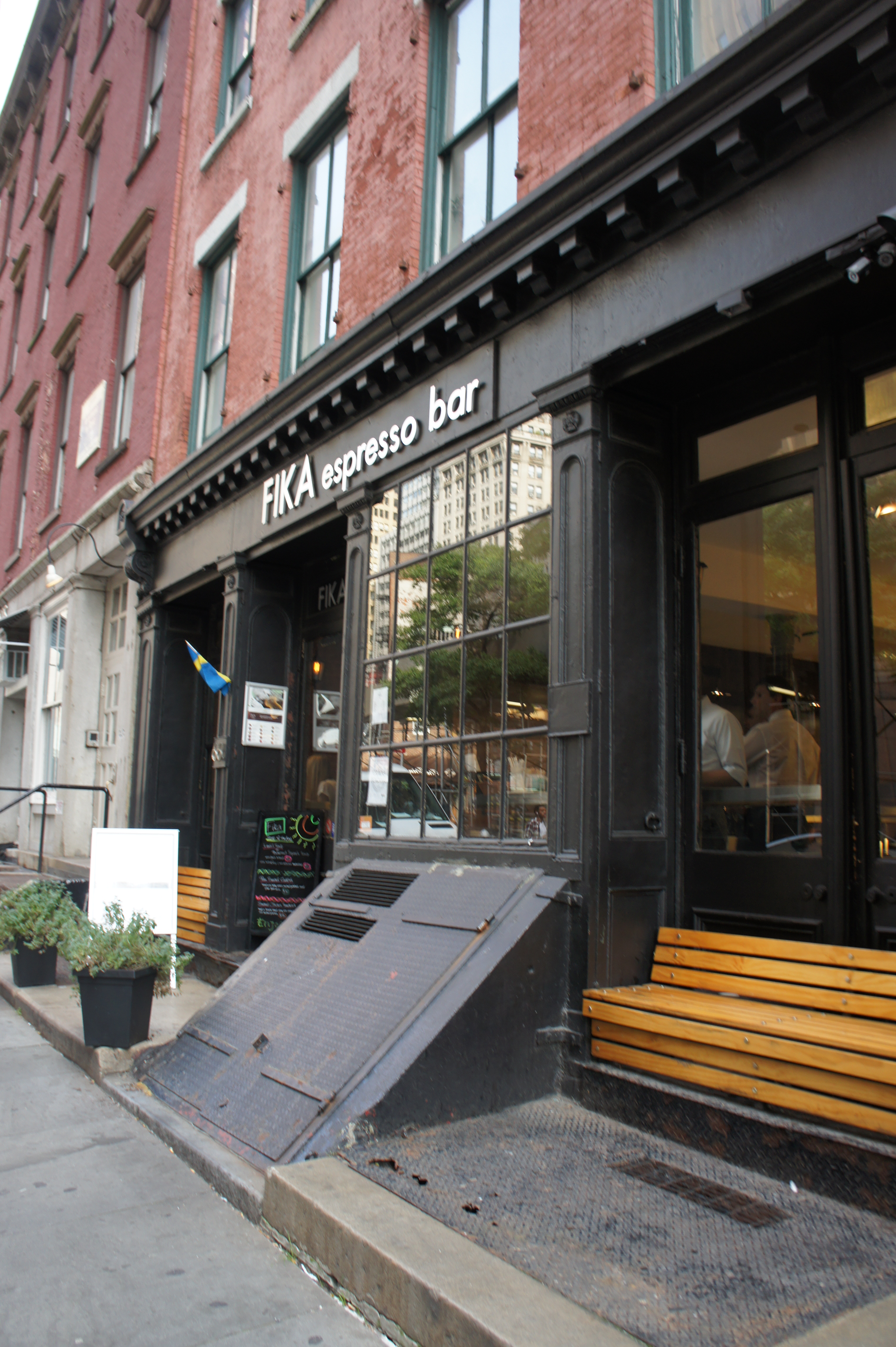 Fika is a fast paced, Euro-inspired, production/output focused cafe that adequately reflects the “NY minute” attitude of the surrounding Financial District. Utilizing a Swedish motif, the cafe itself is visually impressive and “modern,” maybe even borderline showy. Overall, while I found the space appealing, it was a bit cold and sterile. The upscale cafe is much more than just a coffee bar, Fika also offers a full food menu with pastry/dessert selections, which I was unable to try. Unfortunately, because of this potential division of resources/labor and focus on two separate enterprises , I feel the coffee bar side of Fika suffers; despite having a Synesso and roasting their own beans, the quality of their coffee in terms of taste was average at best. This, in my opinion, indicated that the coffee side of the business was somewhat neglected, making the name Fika “espresso bar” a bit ironic.