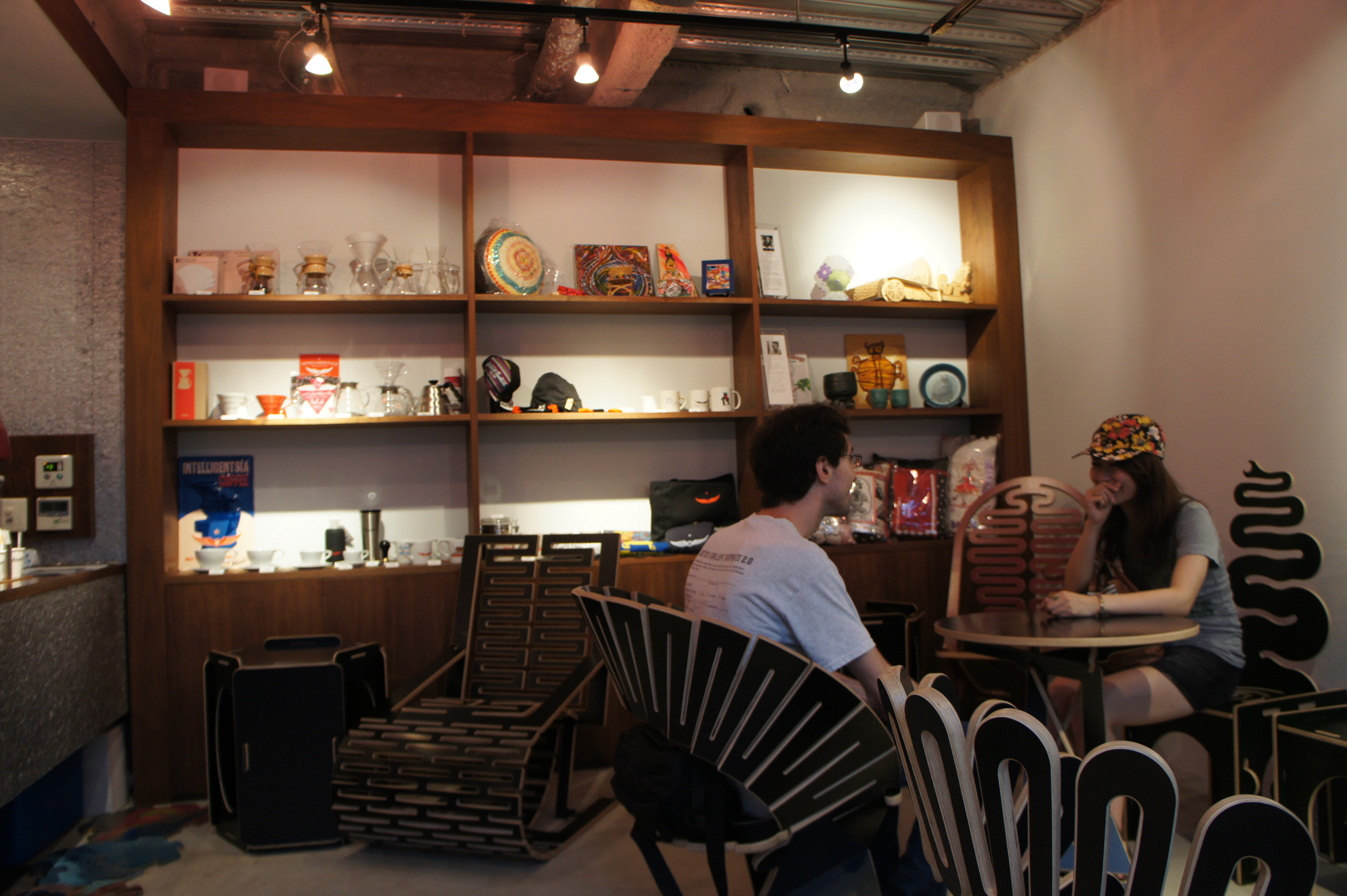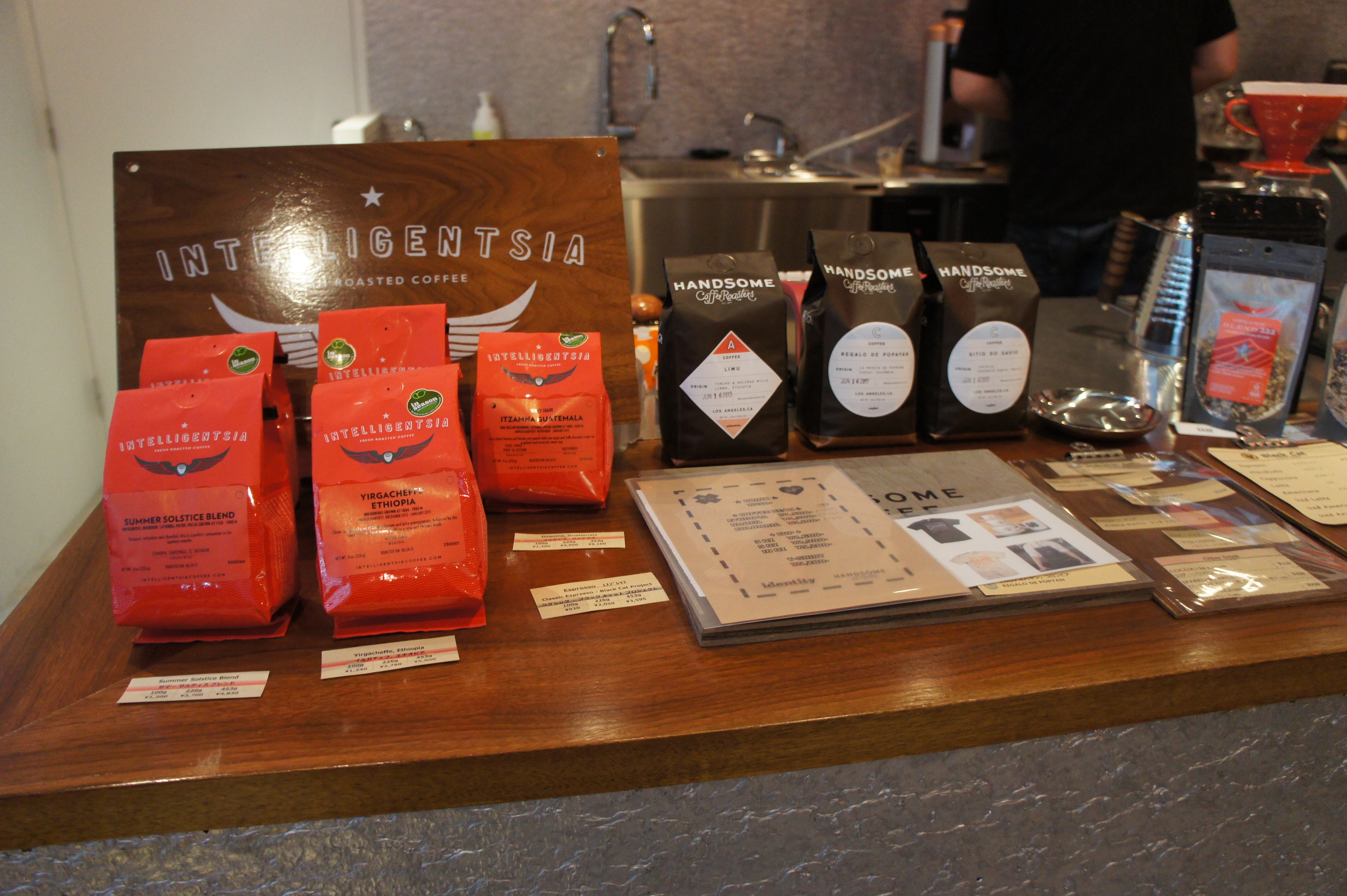 What ironically drew me into a buying frenzy (my first bill was about $20 for my friend and I, little on the pricey side) was the choice of beans from some of the top US roasters. At first, I thought, “how the heck can they keep these things fresh? Either they shipped them via boat which is a 2-3 week voyage and then they are kaput for freshness, or maybe they ship it by air which, if it were overnight, is going to make these things really expensive!” My trepidation, however, was unwarranted. The beans were fresh, appropriately priced, and carefully selected from both Intelligentsia and Handsome (one of my very favorites). 店長 and I got into fanboy mode talking about how much we liked Handsome as he had just come back from a visit to the LA store. With great beans was also great equipment, a fully equipped bar, and of course, tried and true espresso and pour over techniques.