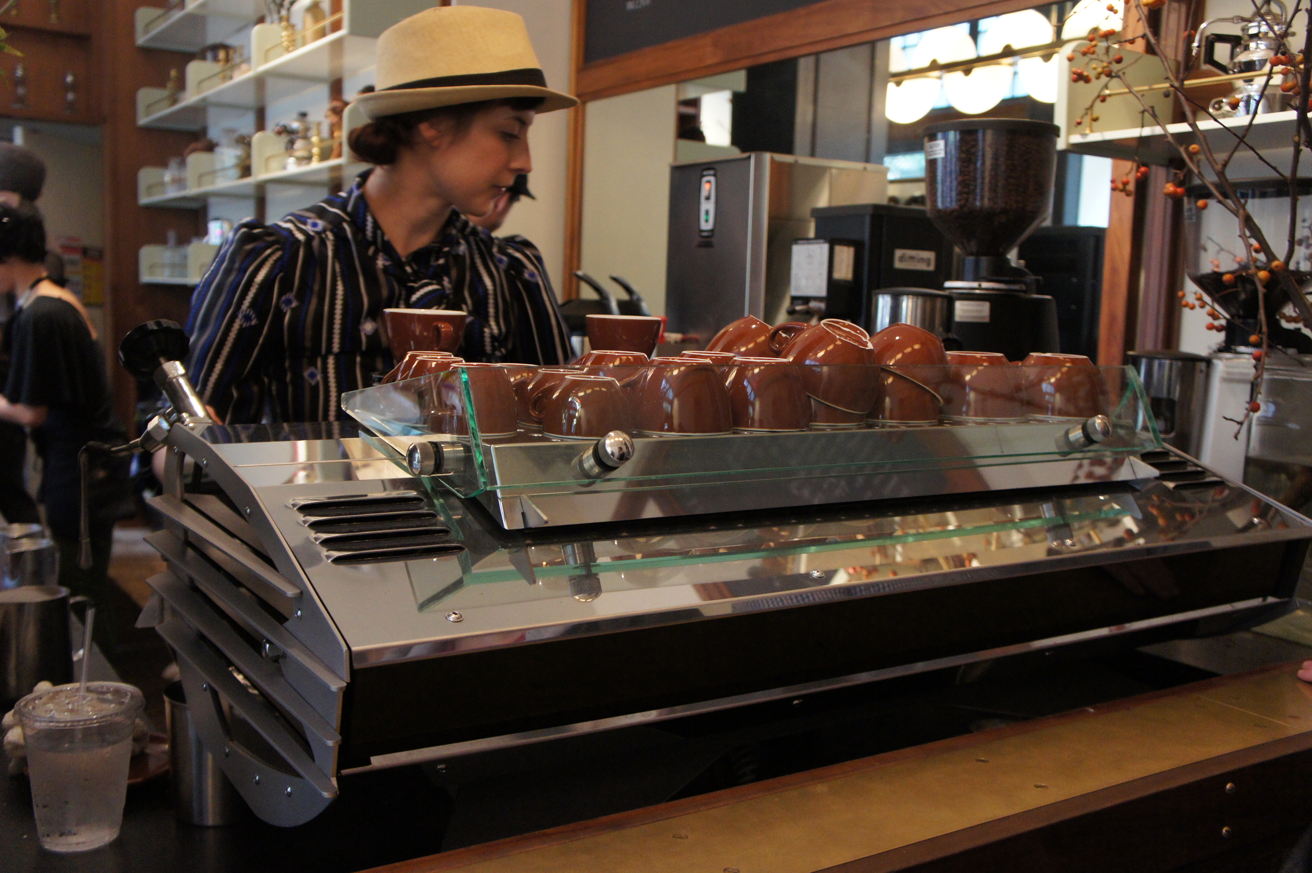 Two things really struck me about this store in particular, neither of which specifically pertained to the coffee itself. Nonetheless, this location had a few notable features I found personally fulfilling. First, it is conveniently attached to the lobby of the Ace Hotel. While the coffee bar and store are aesthetically attractive, the character of the hotel complements the aesthetics of Stumptown quite nicely. Moreover, this additional sitting area makes peacefully enjoying your coffee and conversing with your friends in the busy city that much more convenient; it’s nice when you don’t have to fight for seats like other specialty coffee stores in Manhattan that serve the “high-end” urban bean-craving clientele. Second, I was stoked they were using a La Mistral when I visited. Not sure if they have changed machines since them. Partly because I am a sucker for certain espresso machines, this made my experience much more exciting: (a) I knew the espresso would be killer and (b) it let me know the guys at Stumptown were being very deliberate regarding the design and level of sophistication of the bar. Wins all around.